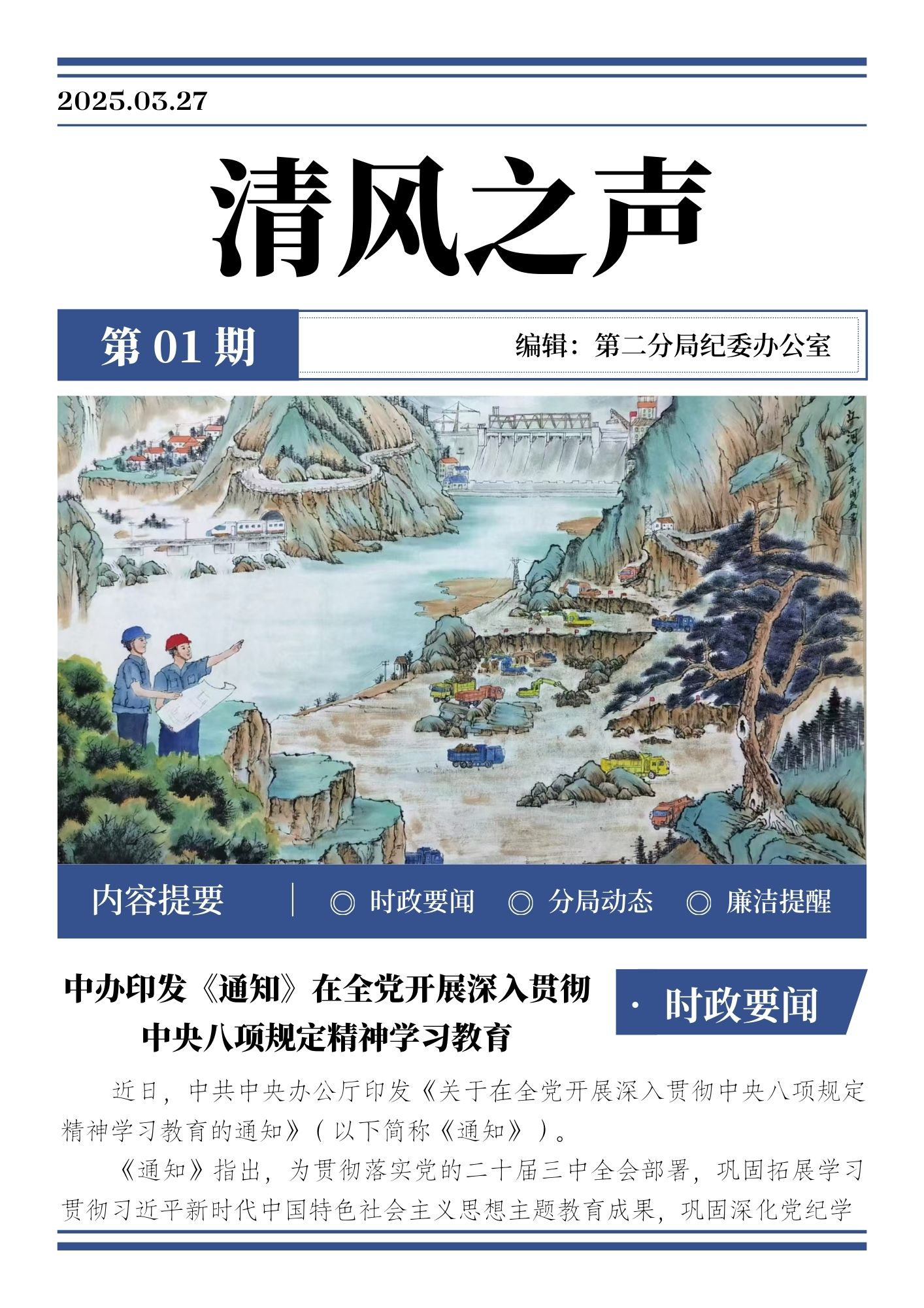 為深入貫徹落實(shí)黨風(fēng)廉政建設(shè)和反腐敗工作要求,創(chuàng)新廉潔教育載體與形式,第二分局紀(jì)委精心打造廉潔刊物《清風(fēng)之聲》,并于2025年3月正式創(chuàng)刊。 《清風(fēng)之聲》以“傳播廉潔理念,弘揚(yáng)清風(fēng)正氣”為宗旨,以簡報形式呈現(xiàn),每月一期,每期約10頁,視覺設(shè)計(jì)上,采用電建藍(lán)為主色調(diào),簡報內(nèi)容豐富多元,包含“時政要聞”“企業(yè)要聞”“分局動態(tài)”“清風(fēng)提醒”“廉潔文化”“學(xué)習(xí)時間”六大板塊,旨在及時傳達(dá)上級黨委、紀(jì)委的重要工作部署和會議精神,記錄分局在廉潔教育、監(jiān)督檢查等各項(xiàng)工作中的具體進(jìn)展,宣傳先進(jìn)典型,開展警示教育,普及紀(jì)法知識,為黨員干部職工提供學(xué)習(xí)交流的平臺。 為確??镔|(zhì)量,第二分局成立了專門的編輯團(tuán)隊(duì),制定了詳細(xì)的創(chuàng)刊方案。方案明確了各支部的供稿任務(wù)、稿酬標(biāo)準(zhǔn)以及轉(zhuǎn)載文章的相關(guān)要求。同時,刊物還同步在微信公眾號平臺發(fā)布,擴(kuò)大傳播范圍和品牌影響力。 《清風(fēng)之聲》的創(chuàng)刊,是第二分局深化黨風(fēng)廉政建設(shè)、創(chuàng)新廉潔教育形式的重要舉措。刊物堅(jiān)持正確的政治方向、輿論導(dǎo)向和價值取向,努力打造成為傳播四局廉潔文化、弘揚(yáng)清風(fēng)正氣的重要陣地,為推動分局高質(zhì)量發(fā)展?fàn)I造良好的政治生態(tài)環(huán)境。 |